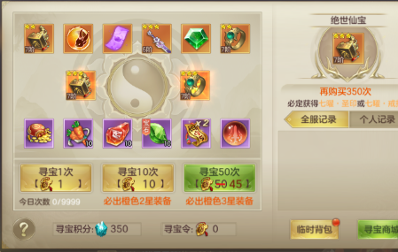 最后就是土豪玩法了,装备寻宝,这里可以获得特殊装备圣印和戒指(单件基本可以加10万+战力),同时还可以获得大量的宝石和培养材料,对于要冲榜的土豪玩家来说,这是最直接最暴力的方式了,碾压一切。当然参加游戏里的开服活动,也可以获得大量超值的道具。