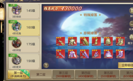任务做完了可以去魔王地图,刷装备,魔王1层是不消耗体力的,可以一直刷,而且BOSS刷新时间很快,爆率也很高,基本当天就能刷满一套4阶红3星,这也是新手玩家的标配了,强烈推荐!