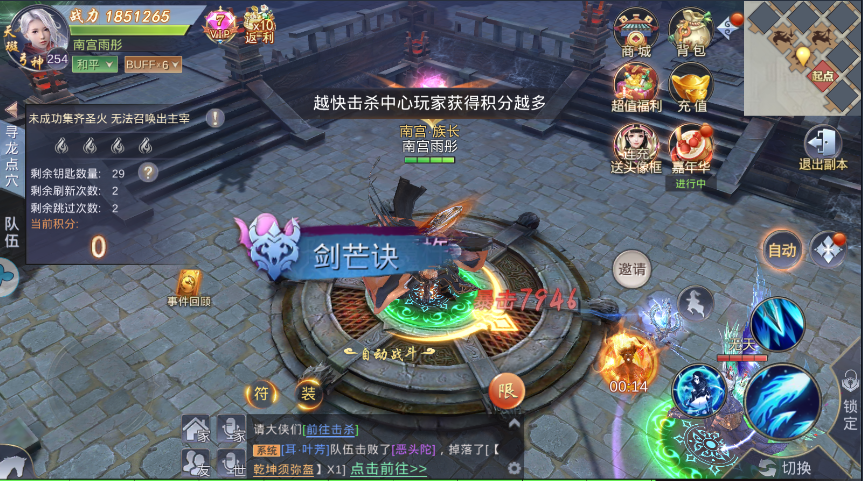 PS:地图上会标注圣火和终点的位置,进入每个房间前会提示下一个房间要完成的时间及获得的积分,要善于利用钥匙来获取积分,积分获得越高,召唤隐藏boss越多,奖励越丰厚。
