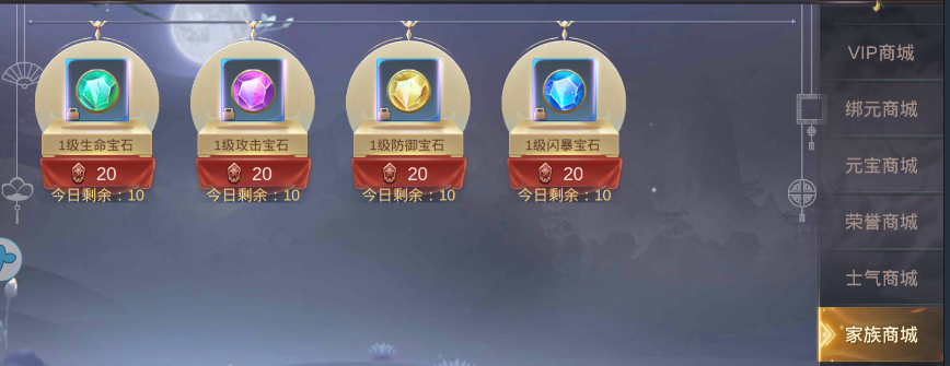 每天为家族做贡献可以升级家族技能,家族升到三级就可以在家族商店用帮贡买升阶材料了,材料每日必买。