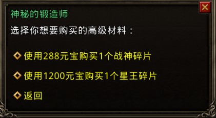 还可以通过购买高级材料来合成战神、星王级装备。
