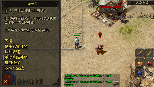 2.领了论坛礼包以后勇士们可以去老兵处继续领取每日低保,几万绑定金币,点"背包"→“商店”→“绑金”,绑定金币可以买药,随机卷,毒,符。