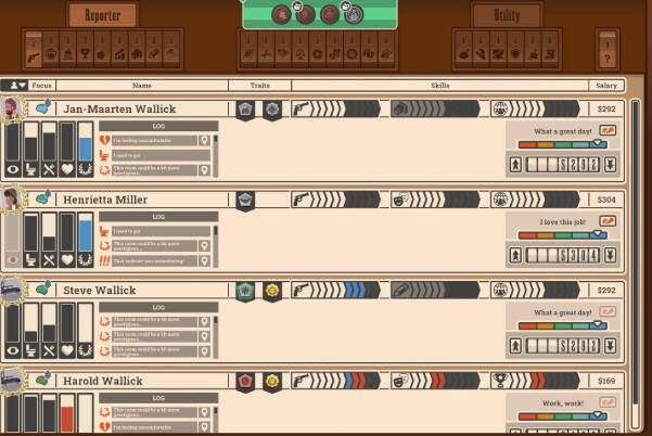 多面手(没用上的技能获得50%经验值,实测非常容易3个技能都5级,配合技巧大师(每有1个5级技能新闻+1星)所有新闻都是4星)1-2个