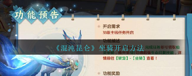 以上就是小编整理带来的《混沌昆仑》坐骑开启方法介绍,大家还喜欢吗?更多精彩内容,请点击关注手游网,小编将持续为您更新!