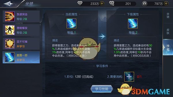 当玩家的坐骑满足条件后就能学习技能了。