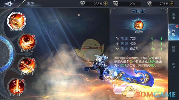 翔空震击:凝聚力量召唤战士之魂,进行3段毁灭性打击,对前方2米圆形范围内多个敌人造成伤害,冷却时间20秒。