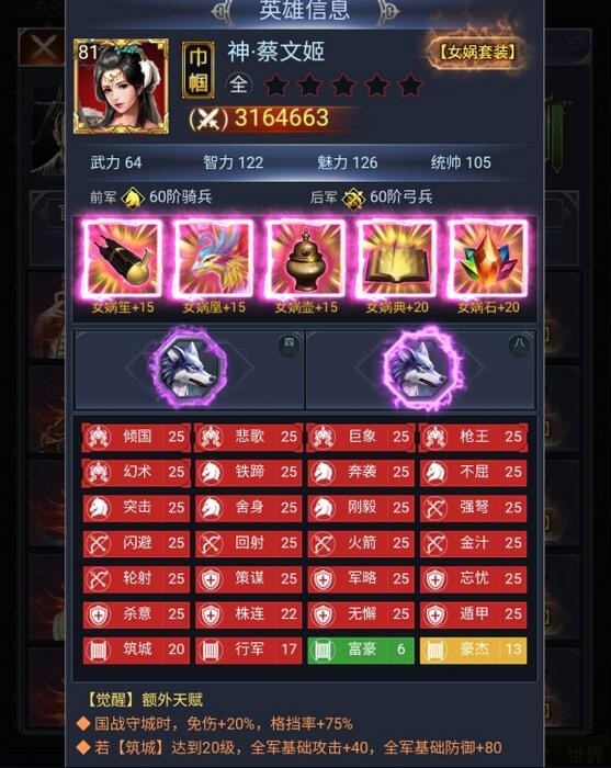 英雄技要学首回合全都释放的,这样可以降低蔡文姬的攻击力。越早释放越好。死斗一定要学,破解蔡文姬超高攻击的轮射。冲阵很好的攻击两次可以破解掉无懈降低防御。金刚,乾坤业火冲阵死斗这几个组合。