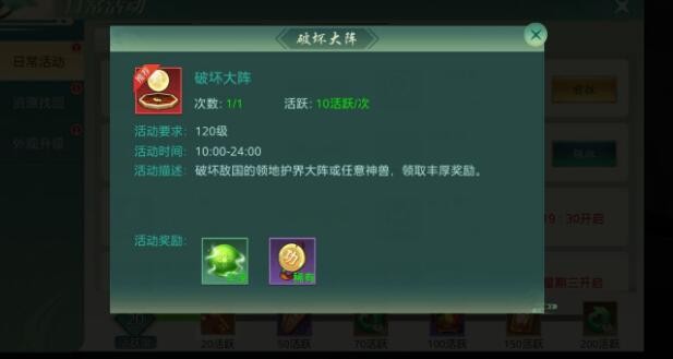 上仙每天都可以领取破坏大阵的任务,即前往帝国的领地破坏护界大阵或任意神兽即可领取丰厚奖励。