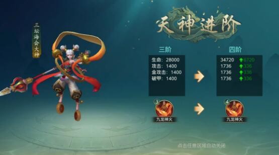 在拥有了天神之后,上仙们可以通过消耗神源来对天神进行培养升阶,当星级满格时,使用对应的天神道具可以完成星级的突破完成天神进阶。