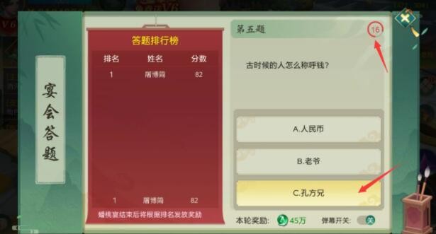 除此之外,蟠桃宴还特别设置了答题活动,答题时间全服统一,过时的题目将不能被作答,所以请准时参与哦~