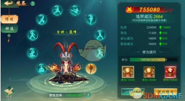 通过挑战升仙塔和冥渊秘境获得极品修为丹和灵品修为丹,然后可以提升境界