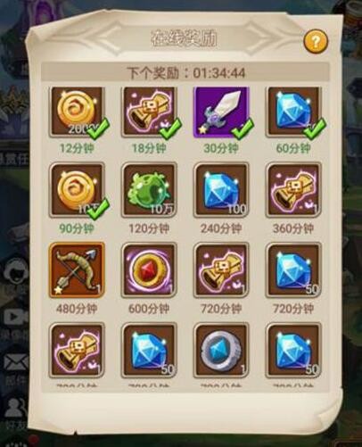 通过游戏内的在线奖励可以看到,每隔一段时间我们都可以获取一份钻石奖励。