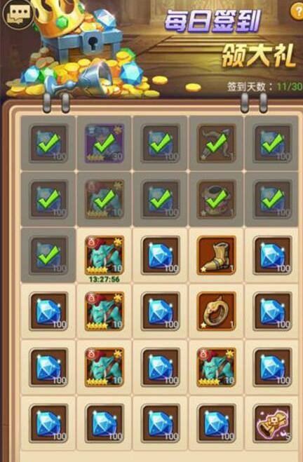 游戏内的每日签到福利,也能获取不菲的钻石奖励、英雄碎片和各项资源,如果觉得上线水时常太麻烦的话,单独上线签个到也是个不错咸鱼的选择。