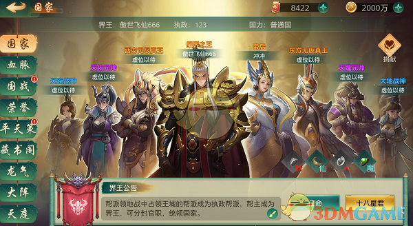 获得帮派战胜利一方的帮主,将会登基成为该国的国王,获得专属称号,还可掌握国家官职的任命大权。