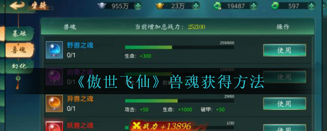 以上就是小编整理带来的《傲世飞仙》兽魂获得方法介绍,大家还喜欢吗?更多精彩内容,请点击关注手游网,小编将持续为您更新!