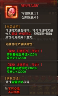 传说符文可以与指定的红色品质符文晶矿融合为星级·传说符文;