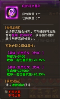 史诗符文可以与指定的紫色品质符文晶矿融合为星级·史诗符文;