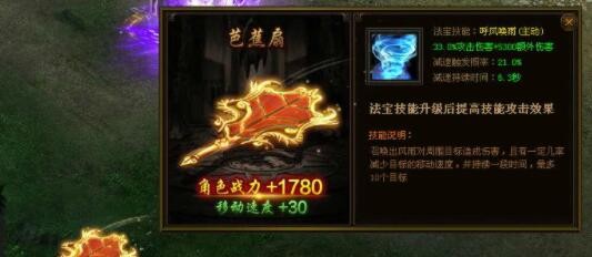 根据游戏内的法宝等级,每提升一个等级,游戏法宝可以提升的移动速度就多30点。