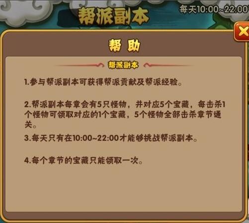 帮派副本在全员通过之后还能获得专属的帮派副本章节通关奖励。