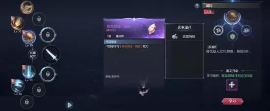 黑龙领域·减防奥义石,可以让法师在使用黑龙领域时降低敌人防御。