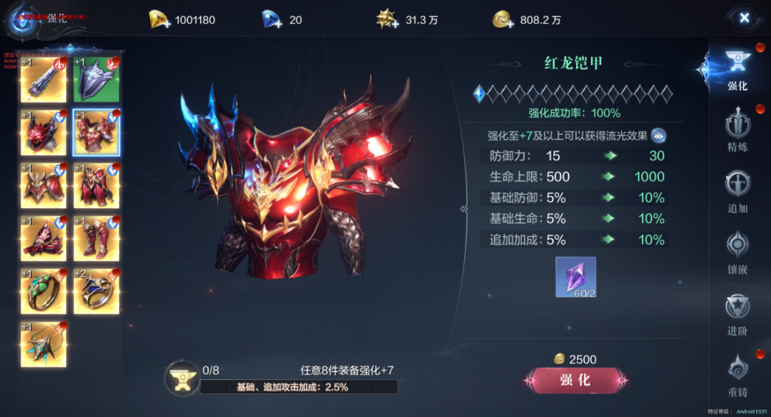 防具2件套的效果是让勇士可以增加一些属性值,比如说愈合就是让勇士增加2500点生命值和15%的生命加成。