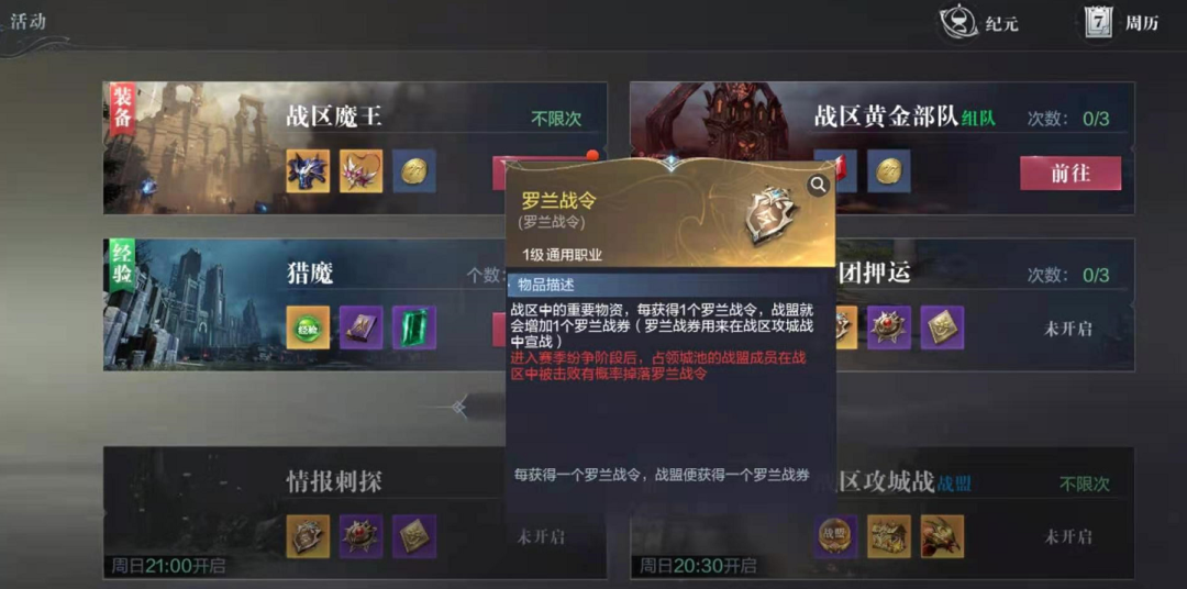 这些“罗兰战令”,就等同于战盟拥有的“罗兰战券”哦。勇士们不仅可以通过击败其他人的方式来夺取“罗兰战令”,也可以在军团押运、情报刺探等战区专属活动中获得。