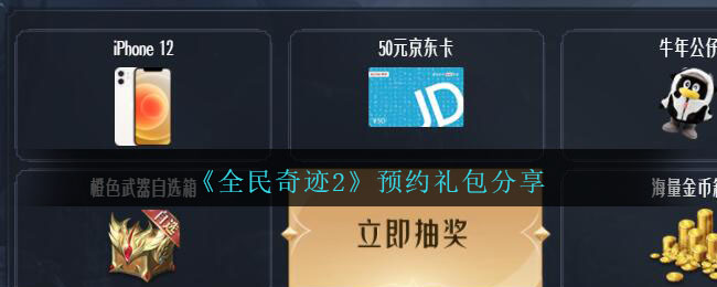 官网成功预约游戏,将可以进入抽奖,抽奖内容包含iPhone 12/50元京东卡、橙色武器自选箱、牛年公仔等