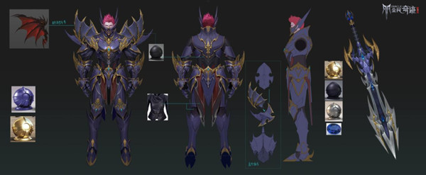 魔剑士的七阶装扮,已经与之前的铠甲有了很大的不同,右肩的铠甲形状已变,发红的双眼也仿佛在表达魔剑士内心的痛苦挣扎和煎熬。