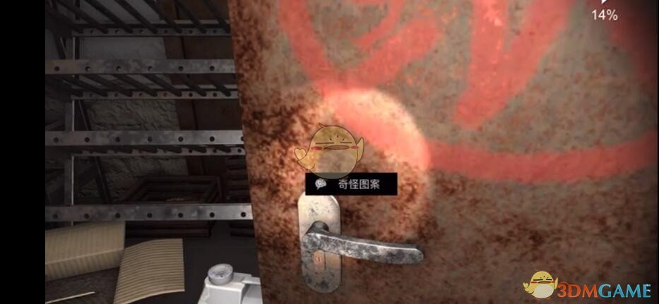 线索详情:门上有一个非常奇怪的图案,看上去像是甲骨文一类的,虽然我看不懂,但我得想办法打开它。