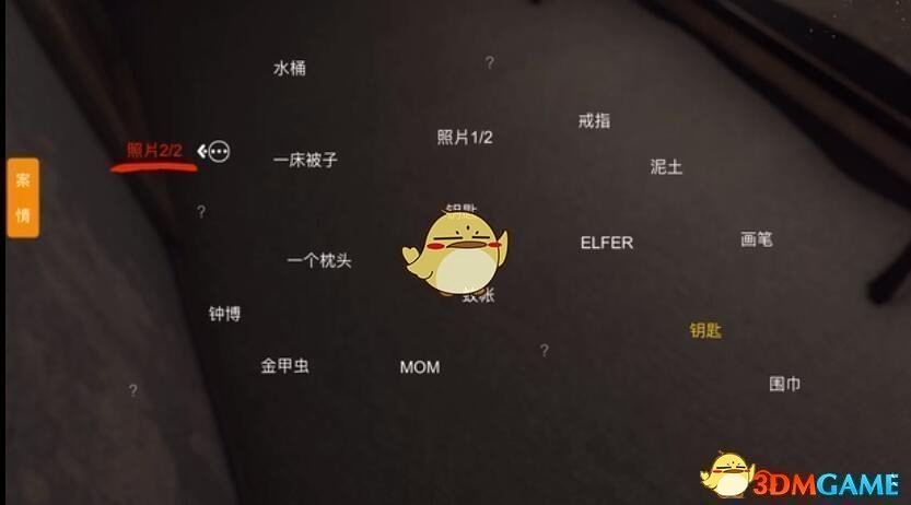 位置:来到如图所示的位置,蚊帐的背面蜘蛛。使用“特制放大镜”对它进行查看,之后获取该线索。