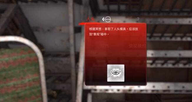 线索详情:根据冥想,拿取了人头模具。应该放到“景观”箱中。