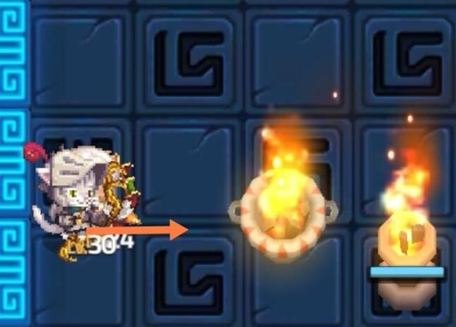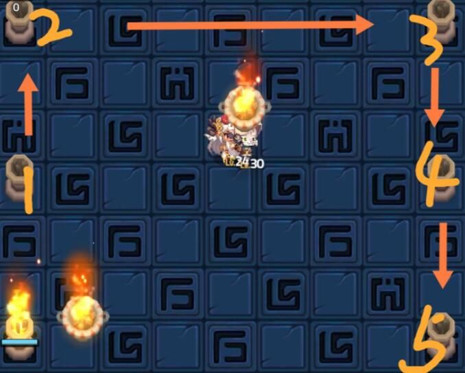 拿一个火盆放左下角柱子旁边 然后这个顺序走