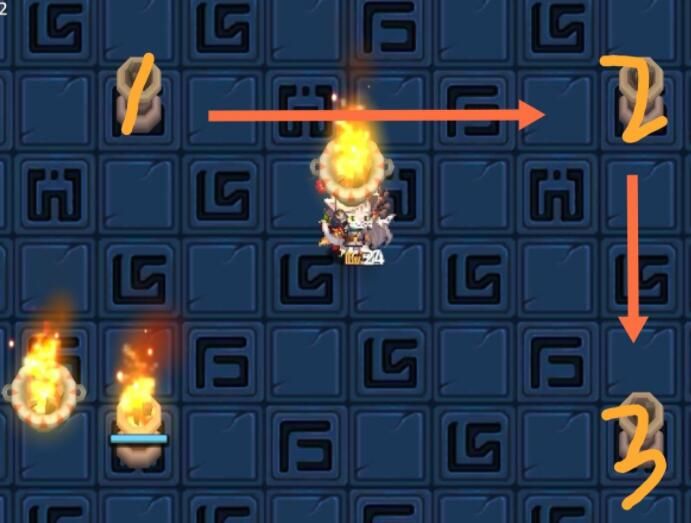 ps:都可以按图示顺序走 然后把火盆向最后一个柱子直接扔过去也可以啦~
