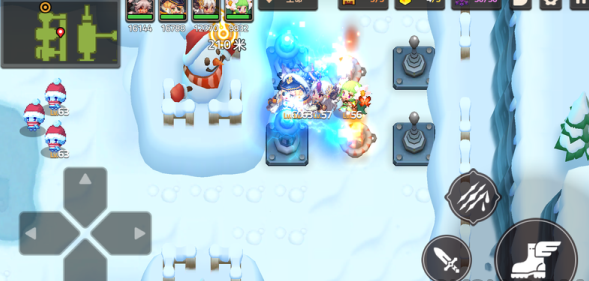 图三:俩火盆偷鸡,正常是把 图四 下面的雪球推大以后把它推到 图三 这俩供电柱中间 把电流堵住