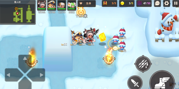 图二:打雪仗 一对一 双方都15血 雪球打他蓄满力才3血 但是火盆 捡起来砸他一下 就10血 于是黄水晶到手