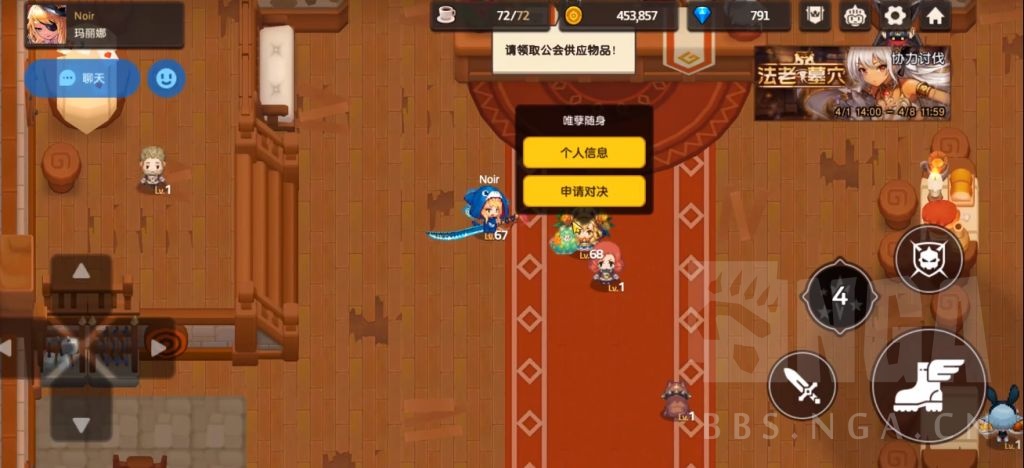 在工会界面你点击角色申请对决的,是可以跟公会成员对战的。