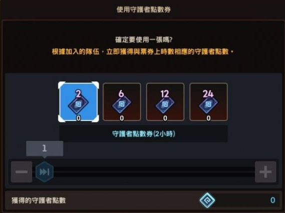 ◉守护者点数的生产将会根据队伍中的英雄进行收集、累积,最多至24小时。