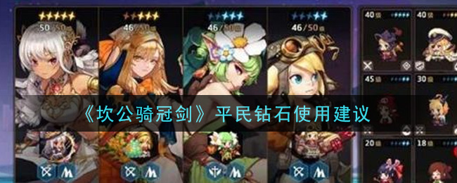 《坎公骑冠剑》手游中的钻石是一种非常珍贵的道具,小伙伴们知道坎公骑冠剑平民钻石怎么用比较好吗?下面小编给大家带来坎公骑冠剑平民钻石使用建议,感兴趣的小伙伴们一起来看看吧。