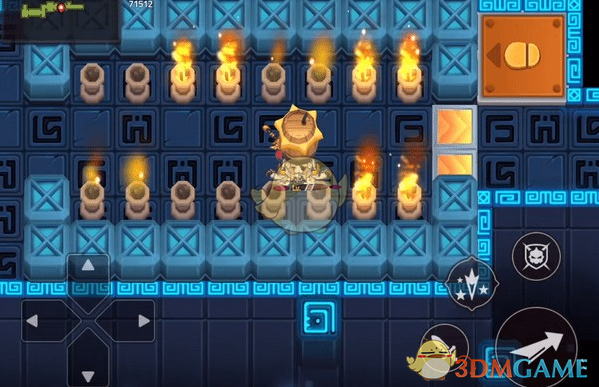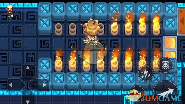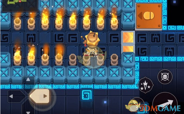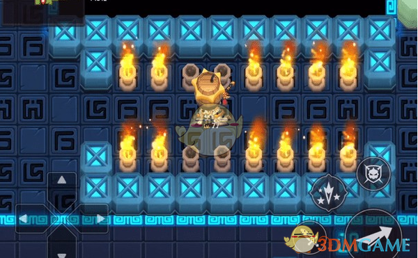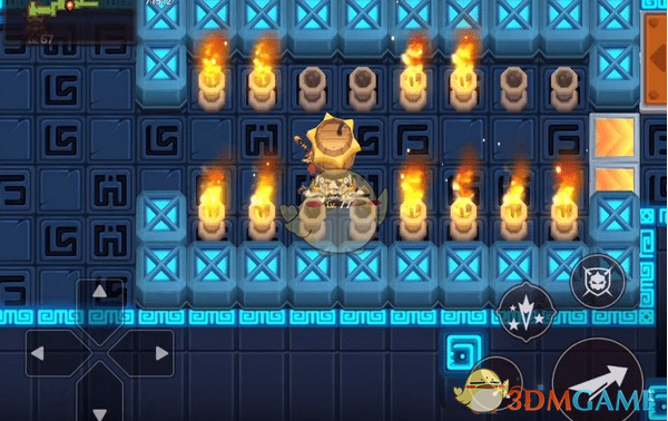 可以把两小格为一步,往右第三步的时候记得要回头,先往左走一步,然后等右边的火焰熄灭,就能直接通过了,第一个小关卡还是很容易的;