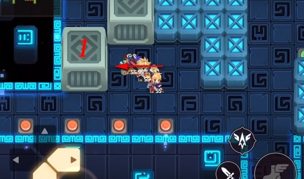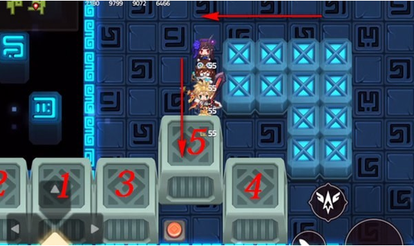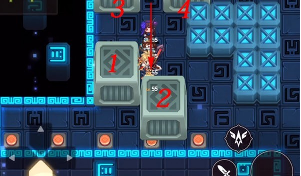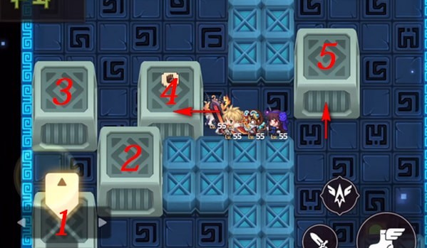然后绕到上方,将5号箱子推开,推动4号箱子,注意只要推动一半,留下通过的路;