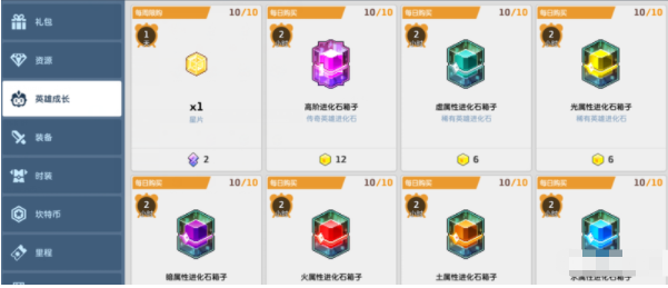 3.星片购买随机碎片箱子咱们就不讨论2星箱子了,毕竟应该没人会去买这个的吧(大概?)星片基本只有刷图才可以大量获得,也是特殊性建筑升级的材料之一现在国服的随机箱子是包括所有3星英雄的,不一定可以抽到你需要的碎片而接下来会更新成善恶箱子,元素箱子,每种箱子各三种元素的碎片最后更新成每种元素一个的纯粹元素箱子