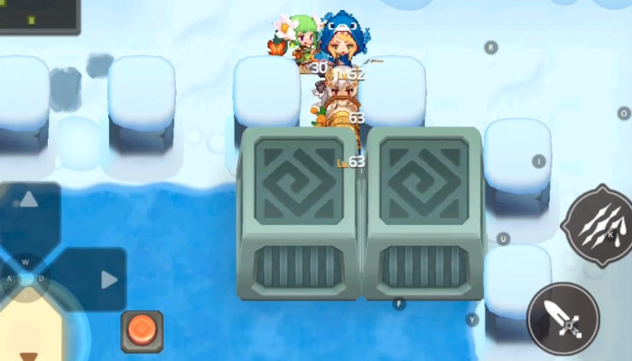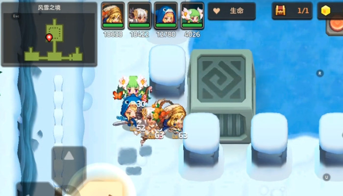 然后可以将眼前的石头推到左边头上,之后向下推,让石头压住机关,之后向上的机关就会开启,从上面走一个凸字形路线,来到另一个区域,会碰到三个小怪物,简答交流后吃掉上方的两个紫色雪花,之后就会解锁鬼影幢幢的洞窟门卡任务,然后回到刚拐下来的地方,一直向下走,路上会有npc和玩家交流。
