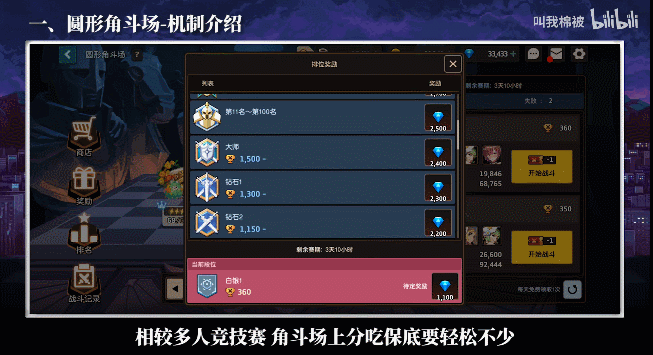 角斗场的排位奖励如图,相较多人竞技赛,角斗场上分吃保底要轻松不少,是新玩家的首要队伍培养方向,比较看重的是角色的搭配和练度。目前刚开服没多久,玩家普遍角色少,练度参差不齐,队伍搭配上并没有选择的余地,只能把现有的角色硬塞进一个队伍,一时间就成了五花八门、百家争鸣的大杂烩环境。但随着玩家的练度成型以及段位的提高,角斗场中的阵容也会逐渐趋于单一化。版本强势的搭配往往只有几种。游戏中比较强势的阵容体系,主要有两种: