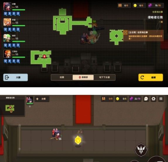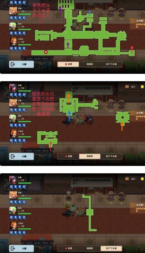 1、侵略者任务关卡小地图(同颜色箭头对应出入口)