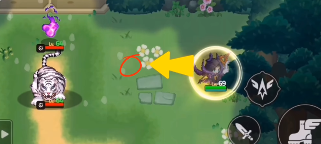 再从树叶下,走到小花与砖块之间的左侧,三只老虎就会大概率聚在一起,且在鬼火旁