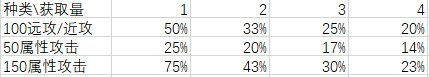 而且这几项之间还会互相稀释(比如土花拿100远程攻击和50土属性攻击的伤害,和拿150土属性攻击是一样的),而且只能加给对应角色,局限性较大,除去开局没得选的情况,后期只建议最多保留一个。虽然两个150属性攻击也有不错的收益,而且可以通过替换武器来让更多人吃到加成,但是需要两次拿到相同的神奇并踩中两个问号,条件太苛刻了。