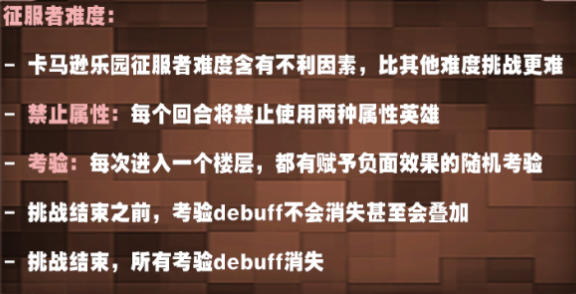 卡马逊乐园征服者难度含有不利因素,比其他难度挑战更难