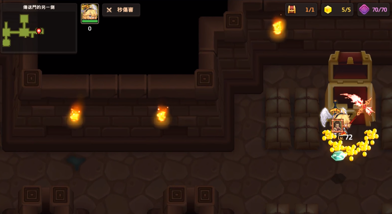 朝右走到底发现宝箱,开启后能获得经验值和金币。