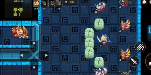 第三房间排列如下图所示,两排石头后面中间两个水奶两个水弓,伤害极高。绕圈拖大招CD有些扛不住伤害。