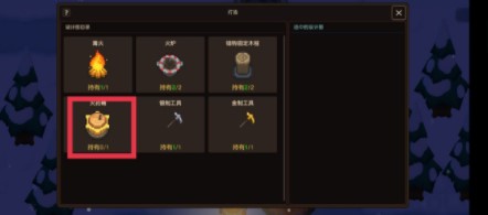 然后回到工作台位置和工作台互动制作2个火盆